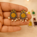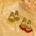 Antique Finish Rectangular Pearl Jhumka Earrings