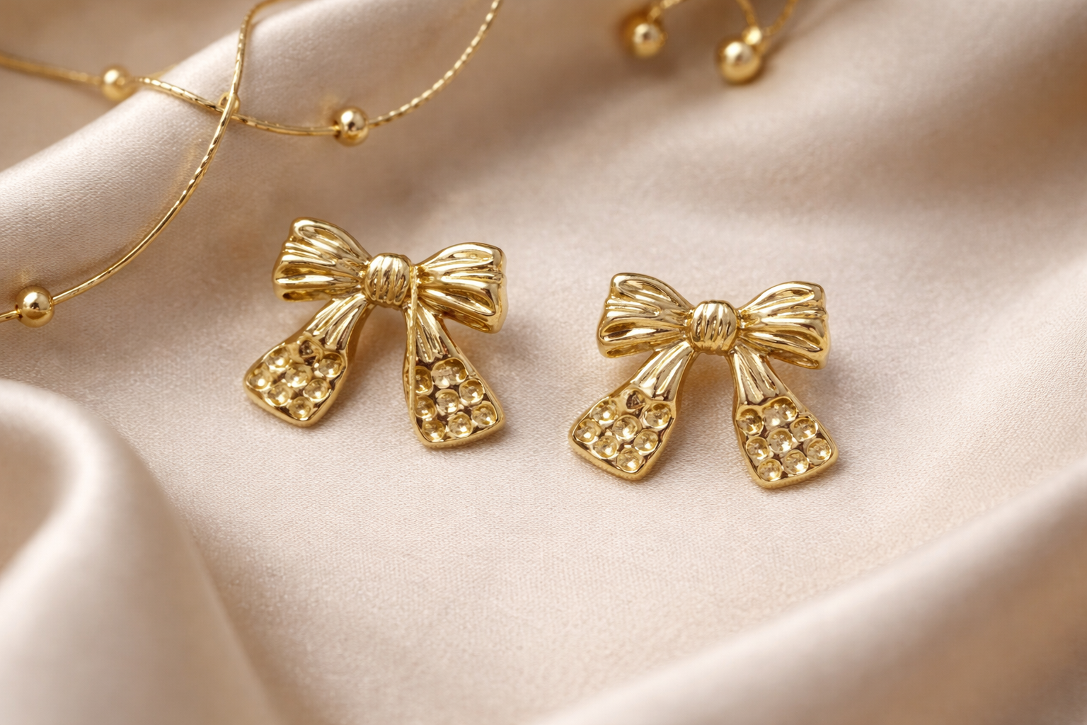 These gold bow stud earrings feature a cute and elegant bow design with a shiny gold finish. The textured details add a stylish touch while keeping the look minimal and classy. They are lightweight and comfortable, making them easy to wear all day.