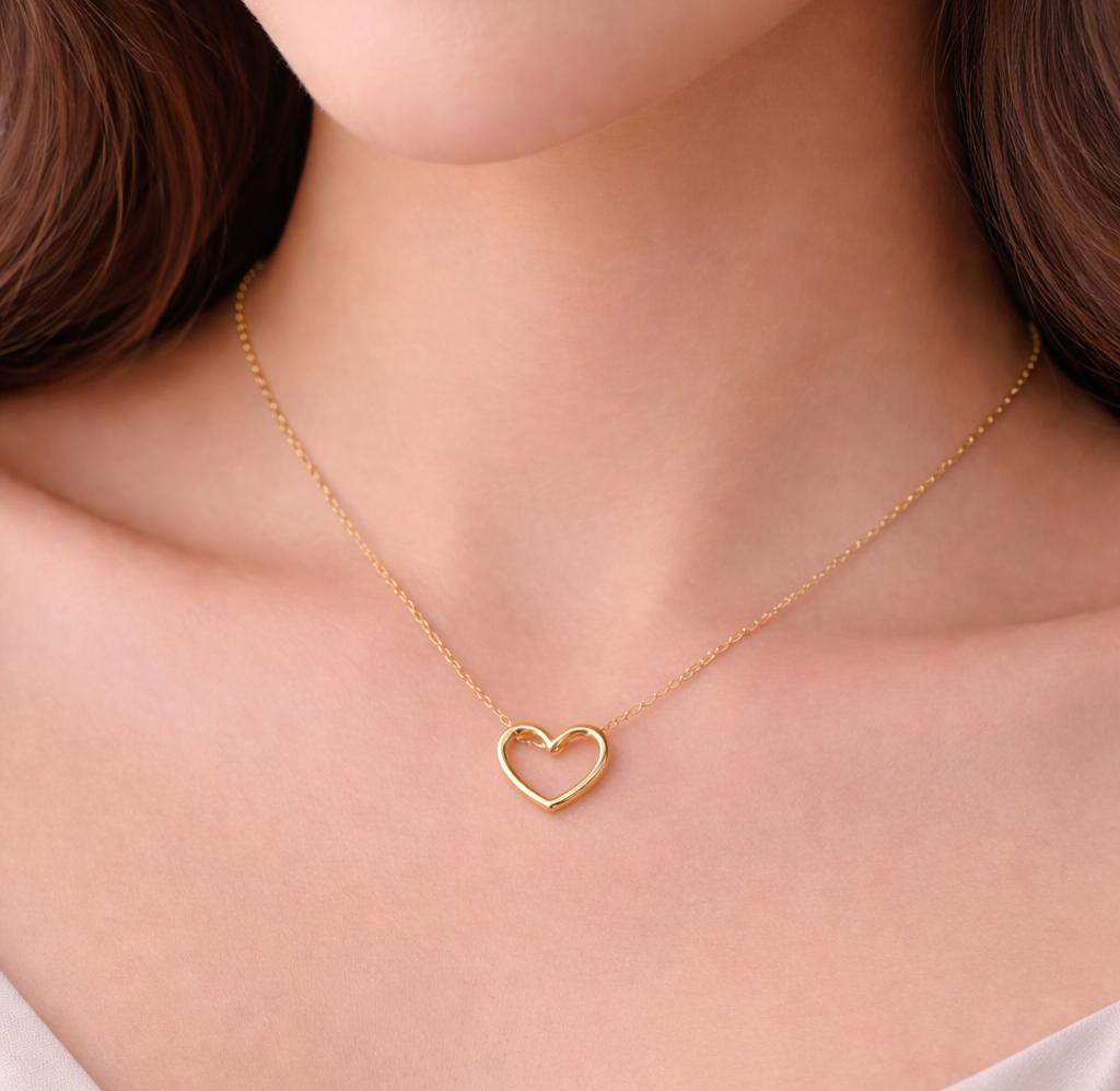 This elegant necklace features a minimal heart-shaped pendant in a gold finish, attached to a fine and lightweight chain. The open heart design gives it a clean, modern, and classy look.